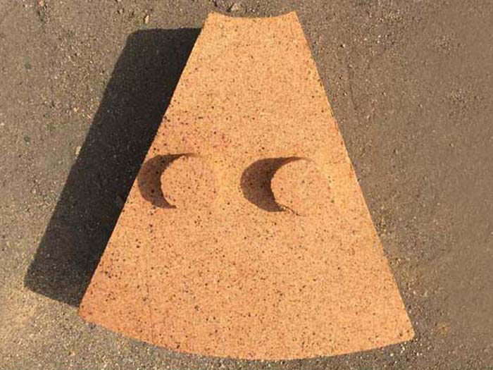 圓環柱體內襯分割成若干個形狀尺寸相同的部分,每個部分即為扇形耐火磚。粘土磚是以粘土熟料作骨料,耐火粘土作結合劑制成的