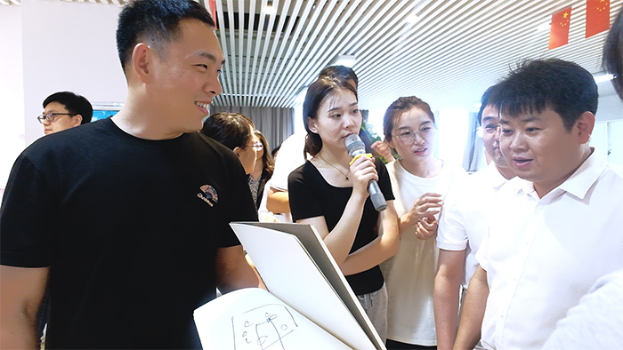 心有靈犀游戲?qū)﹃?duì)員之間的默契度則更具挑戰(zhàn),隊(duì)員們不能溝通,只能憑借自己對伙伴的了解以及對題目的揣摩寫下答案,現(xiàn)場此起彼伏的加油聲讓大家團(tuán)結(jié)地更加緊密;你畫我猜游戲依然考驗(yàn)大家的合作精神,隊(duì)員們格外用心,有的贏得滿堂喝彩,贊賞有嘉;有的雖然沒猜中,但是南轅北轍的答案也博得大家一樂,現(xiàn)場充滿了歡聲笑語。