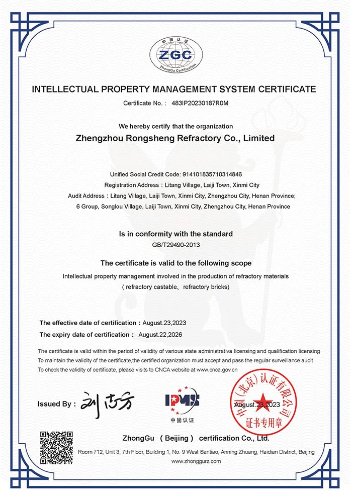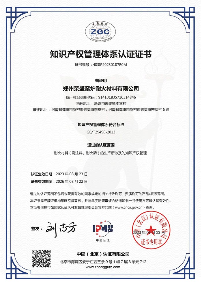 | PRODUCT喜訊!榮盛耐材通過「知識產(chǎn)權(quán)管理體系認證」!